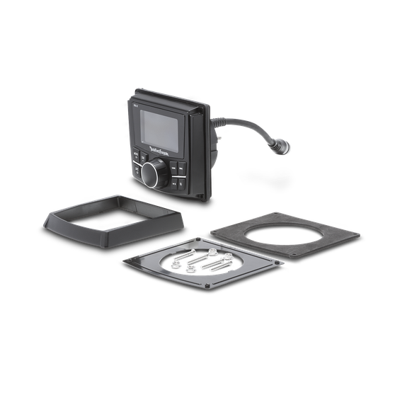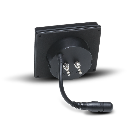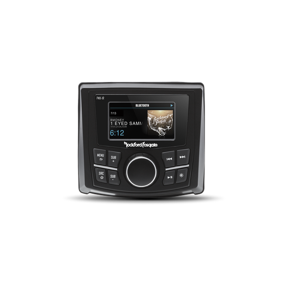 Control multizona, subcontrol del panel frontal, control de volumen con codificador rotatorio resistente al agua, control de iluminación del panel frontal, certificación IPX6 del panel frontal, iluminación de botones con LED de fondo. Funciona con todas las unidades fuente PMX.